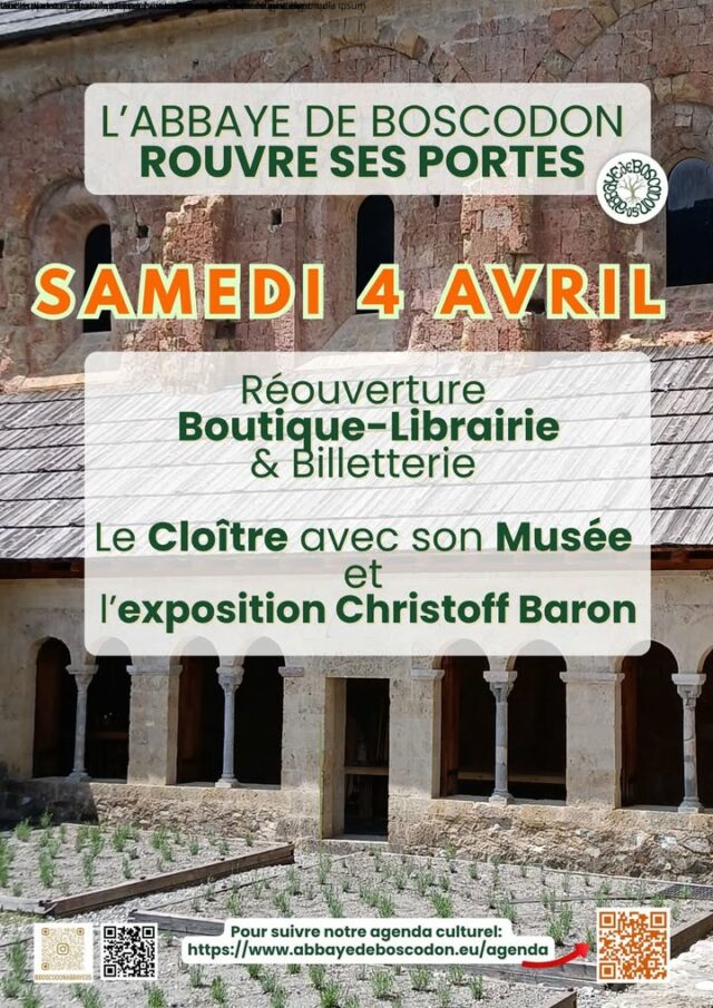 ‼️ OUVERTURE de l’Abbaye de Boscodon ‼️ 📆 Samedi 4 avril 2026. ➡️ Ouverture du cloître, de la muséographie et de la librairie.